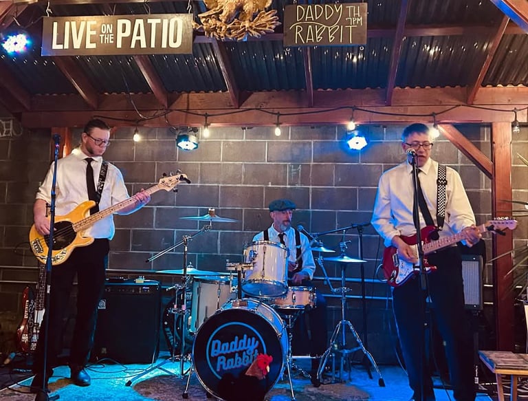 Our lively performances blend classic rock and roll hits with vibrant rhythms, ensuring a fun-filled experience that keeps audiences coming back for more .Daddy Rabbit is a three-piece rock and roll/rockabilly band that got together in the Winter of 2013. They made their first record “Shake like a tree” in 2015, “Born to Rock and Roll” 2016, "Come on up!" 2018, and "Let's have a party" and "Rooster rock" in 2020. They'll be releasing "Steal some time" in 2024. Simple, basic and raw rock and roll composed of the same ingredients that went into the original rock and roll recipe. Namely, that special blend of blues and country that pops, spins and motors in a unique way that just makes you want to move. Robert Jacobs is on guitar,vocals and harmonica. Kasey Rajkovic is on drums and Josh Swearingen is on bass.